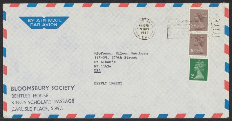 Envelope from Ian Hall to Eileen Southern (November 8, 1983)