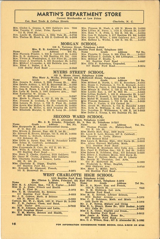 Educational Directory: Charlotte City Schools 1942-1943