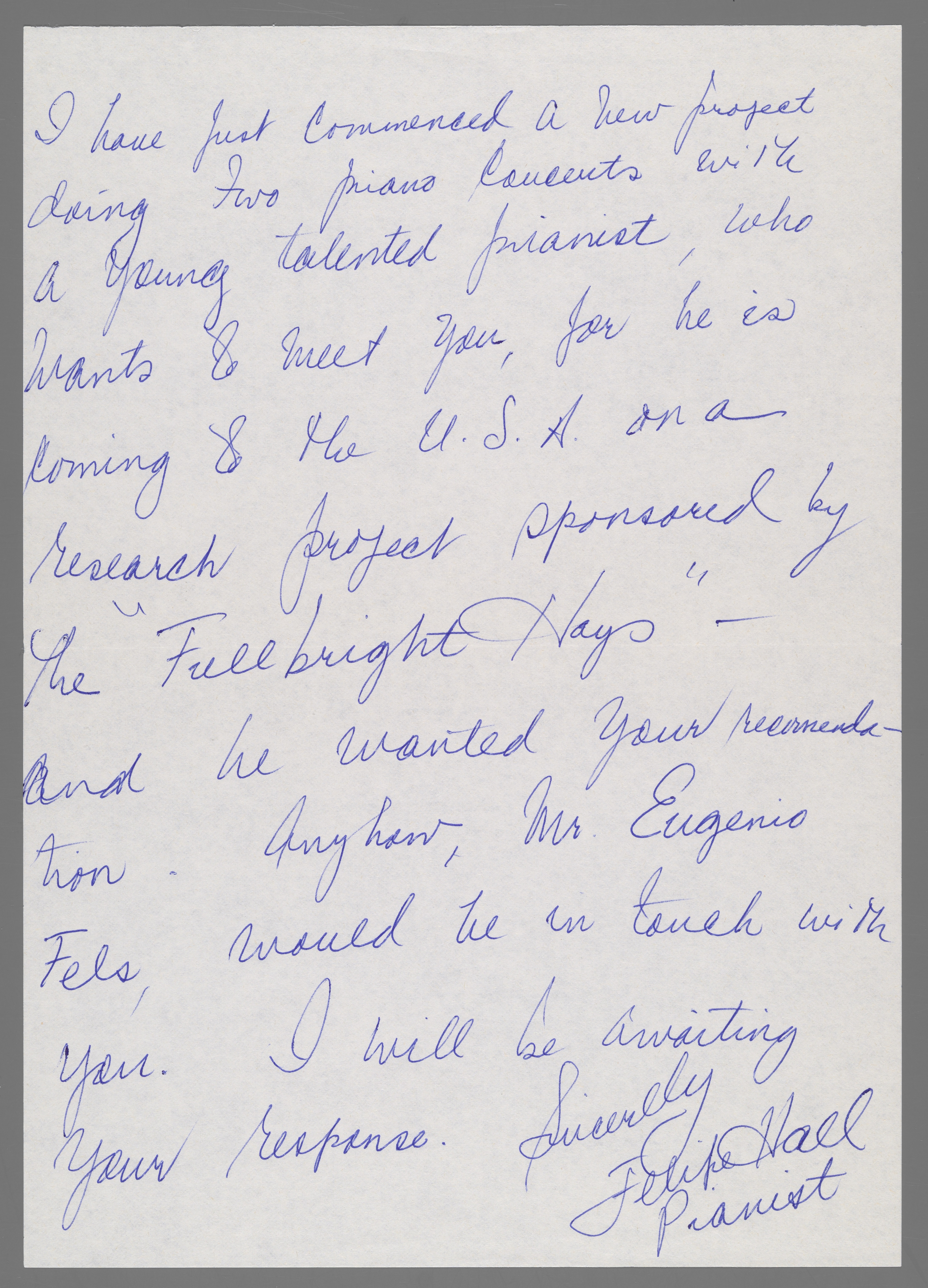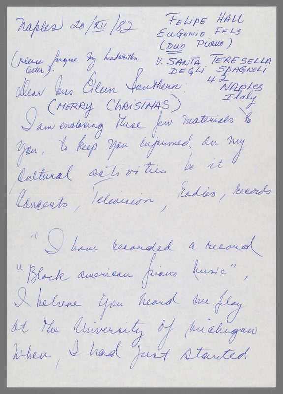 Letter from Felipe Hall to Eileen Southern (December 20, 1982)