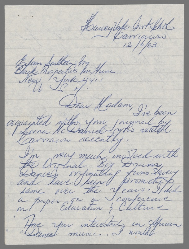 Letter from Christine L. David to Eileen Southern (December 6, 1983)