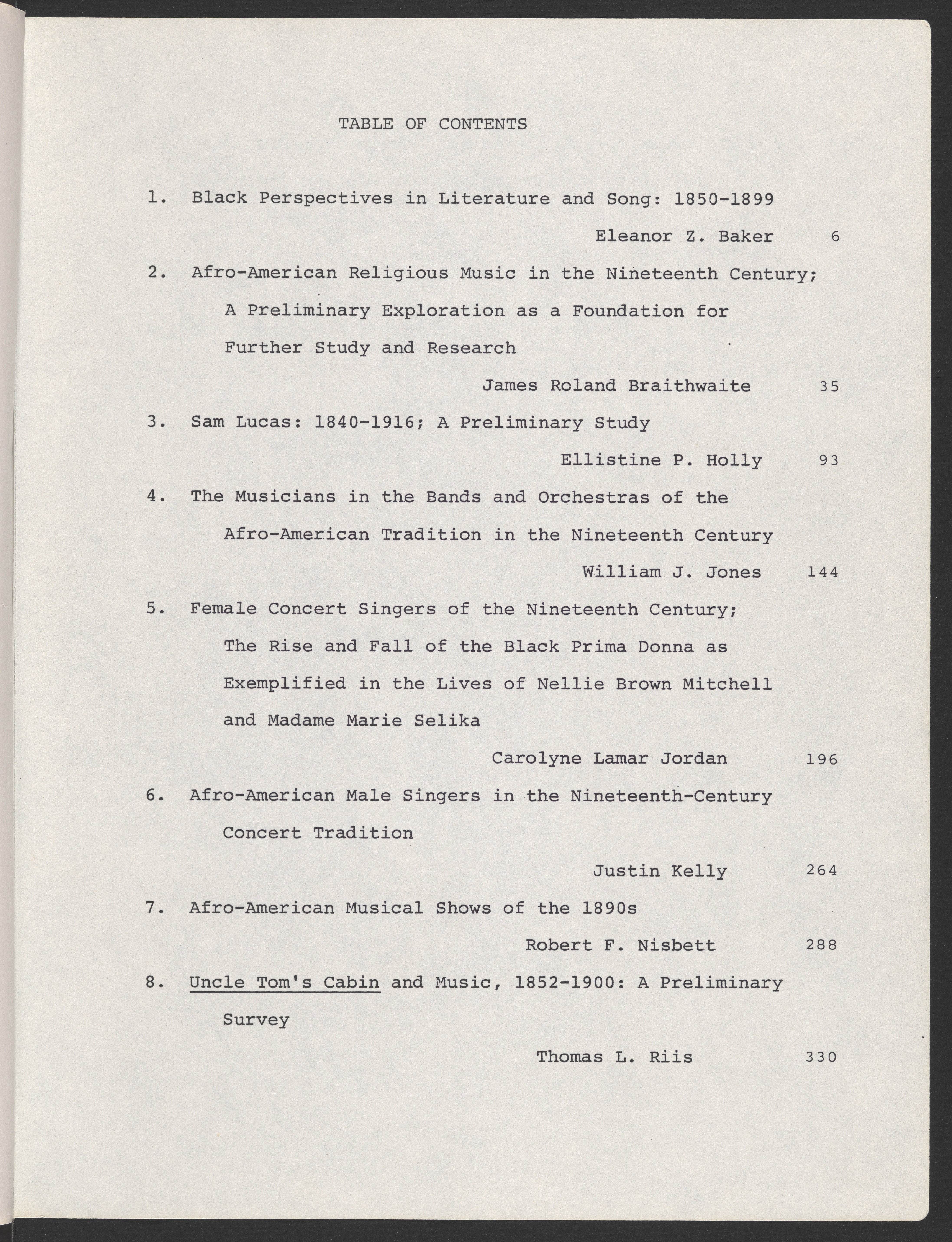 Papers of the National Endowment for the Humanities Summer Seminar for College Teachers: Afro-American Musicians in the Nineteenth Century