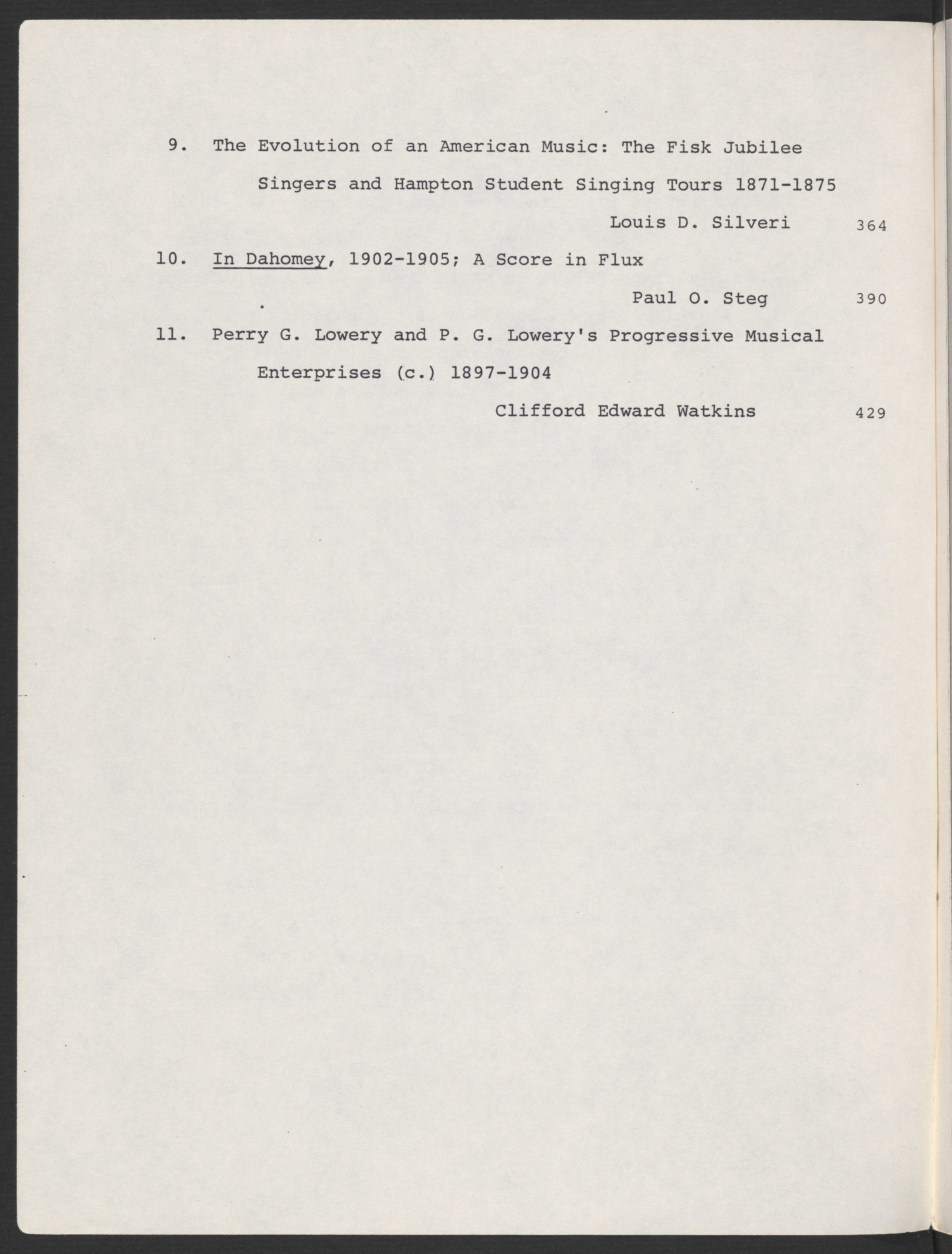 Gift of Thomas Riis to the Eileen Southern Collection at the Harvard University Archives.